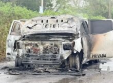 Una camioneta de transporte de valores se incendió la tarde de este lunes en la carretera Álamo-Tihuatlán, a la altura de la comunidad La Reforma, en Tihuatlán. Protección