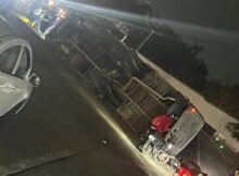 El camión se subió al camellón central para, tras dar varias vueltas, terminó volteado sobre a uno de sus costados en el carril contrario, el que lleva del