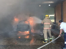 Miguel Torres Carrillo Tlapacoyan, Ver. Envuelto en llamas se vio un automóvil en el taller «El Mofles», bomberos acuden a combatir el siniestro. La reparación de un automóvil