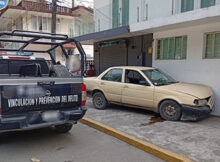 Miguel Torres Carrillo Martínez de la Torre, Ver. Destrozado de la parte frontal quedó un automóvil Nissan, luego de que un automóvil Renault, lo impacta. El accidente ocurrió
