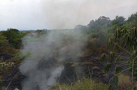 Miguel Torres Carrillo Martínez de la Torre, Ver. Casi media hectárea se quemó de pastizal, a un costado de la colonia Río chico, dónde los habitantes tenían que