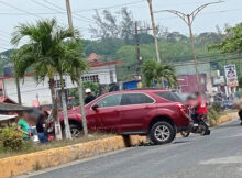 Misantla, Ver. Pierde el control de su camioneta y terminó sobre el camellón central, además causó daños a una motoneta, autoridades tomaron conocimiento del percance. El accidente ocurrió