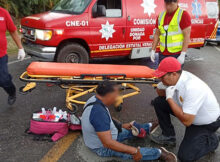 Martínez de la Torre, Ver. Sobre la carretera rodó un discapacitado, cuándo rebotó con su cuatrimoto en el costado de una camioneta, cuerpos de emergencia acuden a su
