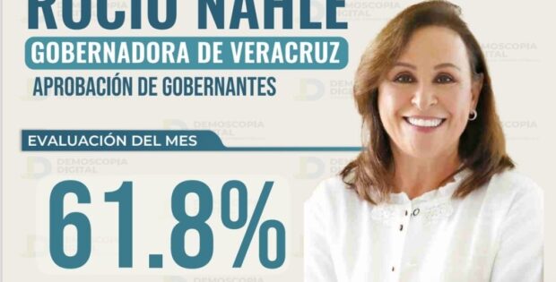 #Xalapa La gobernadora de Veracruz, Rocío Nahle García, registra 61.8 por ciento de aprobación ciudadana, de acuerdo con la medición nacional de marzo de 2026 de Demoscopía Digital,