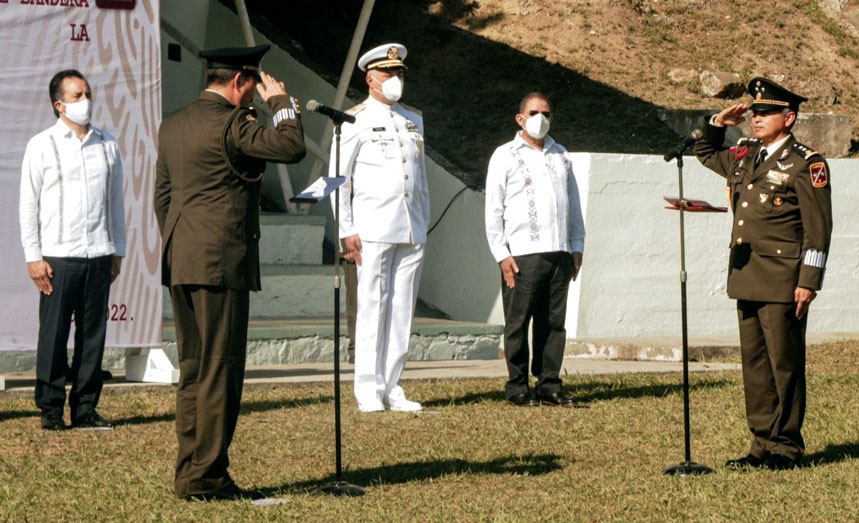Este martes, el alcalde acompañó al gobernador en la Mesa de Trabajo de Construcción de la Paz y en la ceremonia de toma de posesión y de protesta de bandera, al comandante de la XIX Zona Militar General de Brigada D.E.M. Gaudencio García Rodríguez.