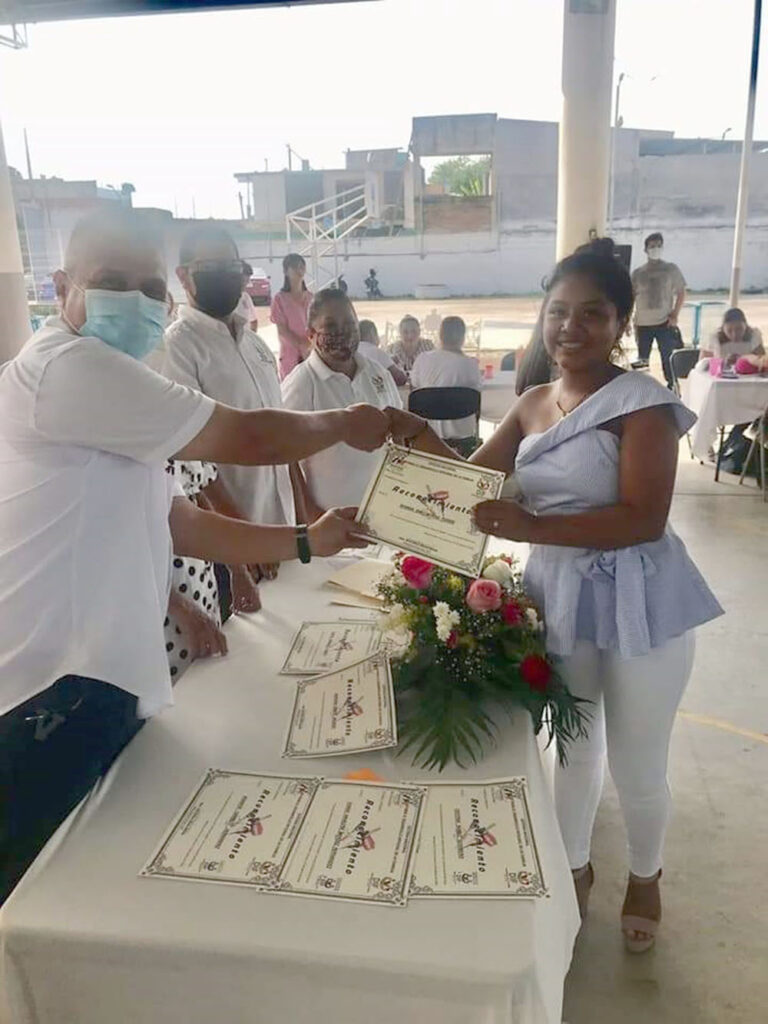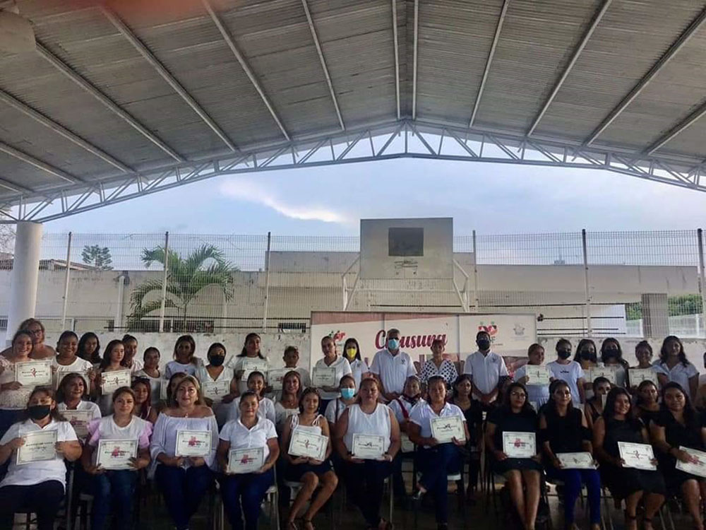 Luego de afirmar que la educación es el arma más poderosa que se puede usar para cambiar el mundo, la presidenta del DIF Municipal, Socorro Arias Marín, clausuró y entregó reconocimiento a las mujeres que concluyeron satisfactoriamente sus capacitaciones en maquillaje de rostro, colocación y decoración de uñas, manicure y pedicura, colorimetría y corte de cabello.