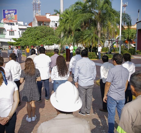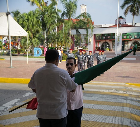 Al encabezar los honores a la bandera, en el parque central José María Mata, la mañana de este lunes, el alcalde Rodrigo Calderón Salas exhorta a trabajadores del ayuntamiento a ser corteses dentro de la administración municipal, pero también en su vida cotidiana, señalando que la cortesía es una demostración de respeto y educación que se expresa a través de las buenas costumbres.