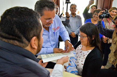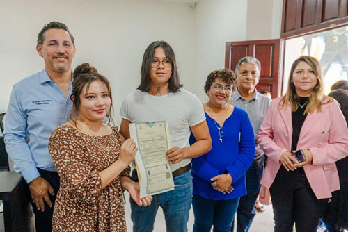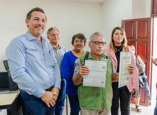 El alcalde Salvador Murrieta Moreno, hizo la entrega de un acta de nacimiento al señor Gregorio de 66 años, registro de Mauricio y el matrimonio de José Benigno y Ediht Téllez, quienes enlazan sus vidas por la vía civil, además de brindar asistencia a más de 50 ciudadanos aproximadamente.