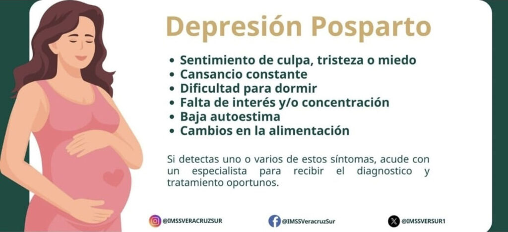 De acuerdo con el Instituto Mexicano del Seguro Social (IMSS) en la depresión posparto, es un trastorno del estado de ánimo que puede afectar seriamente a la madre, al bebé y al entorno familiar.