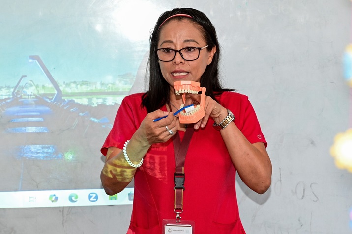 En las pláticas, se les explicó qué son la caries y otras enfermedades bucales. Posteriormente, complementó su charla con un video interactivo y una demostración de la técnica correcta de cepillado dental.