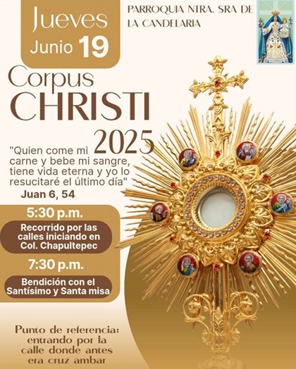 Convoca Parroquia Nuestra Señora de la Candelaria a celebración de Corpus Christi 2025