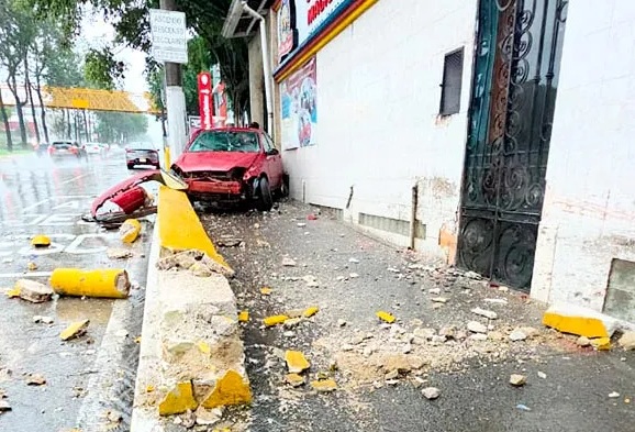 Según los primeros informes, el conductor circulaba a exceso de velocidad y en presunto estado inconveniente. La combinación del pavimento mojado y la falta de control al volante provocó que el auto se saliera del camino y terminara sobre la banqueta.