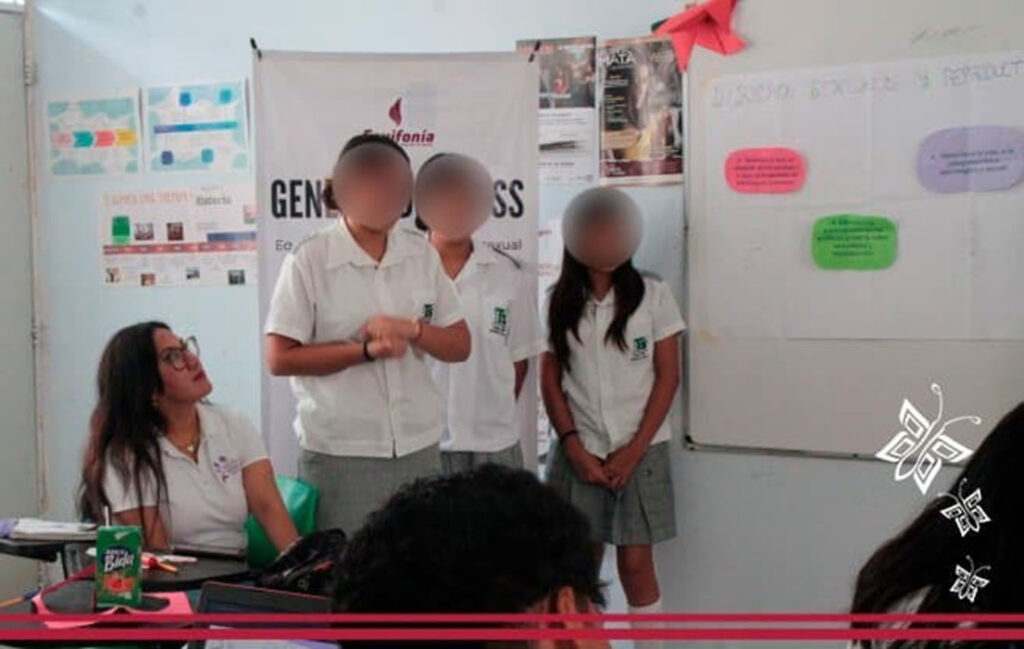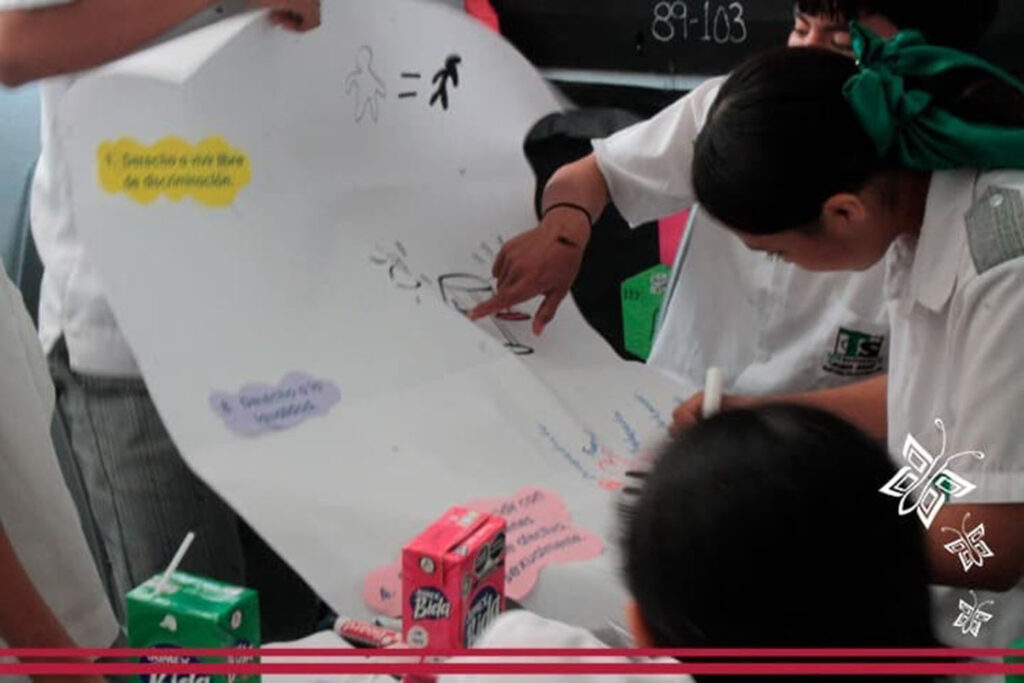 Mary Beda Patlax Valdivia, asociada y Karina Soto Zarazas ejecutiva de este colectivo, señalan que el objetivo es integrar los Equipos Comunitarios en Salud Sexual (ECOSS), integrado por adolescentes para que puedan replicar la información sobre dónde acudir y qué hacer en caso de ser víctima de violencia sexual, siendo en esta ocasión los estudiantes de la Telesecundaria Jaime Nunó de la Colonia Del Valle quienes recibieron esta capacitación.