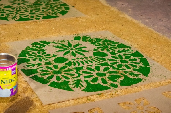 Inicia creación de tapete artesanal por fiestas patronales en Martínez de la Torre