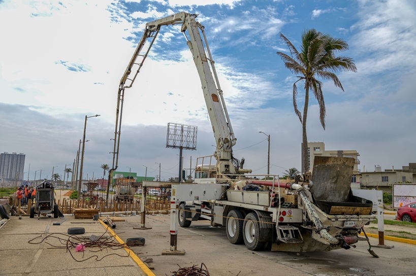 Este viernes, se realizó el suministro y vaciado de 49 metros cúbicos de concreto premezclado, especialmente formulado para resistir sulfatos y ambientes marinos.