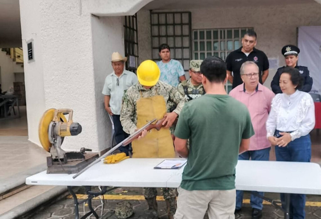 El Teniente Coronel de Infantería, Roberto Delgado Chapol Comandante del 87 batallón de Infantería en compañía del C.P. Héctor Lagunes Reyes, presidente Mpal. De San Rafael, realizaron la inauguración de la Campaña nacional de Canje de Armas “Sí al desarme, si a la paz”.