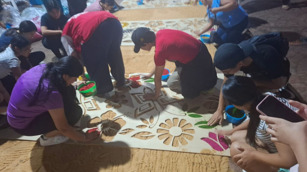 Tres toneladas de aserrín fueron ocupadas en el tapete artesanal