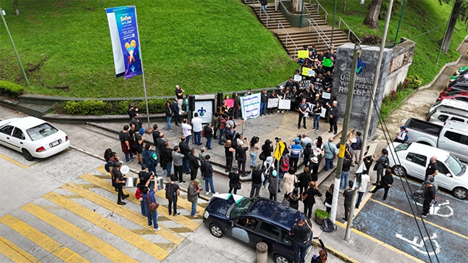 Un grupo de académicos, estudiantes, personal administrativo y técnico se manifestaron pacíficamente frente al edificio de Rectoría de la Universidad Veracruzana (UV).