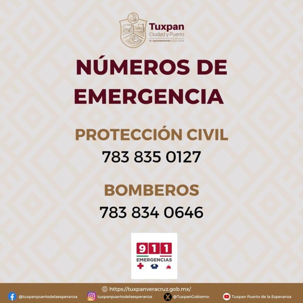En una situación de emergencia pueden comunicarse a los siguientes números: Protección Civil 783 83 50127, Bomberos 783 83 40646 y Emergencias 911.