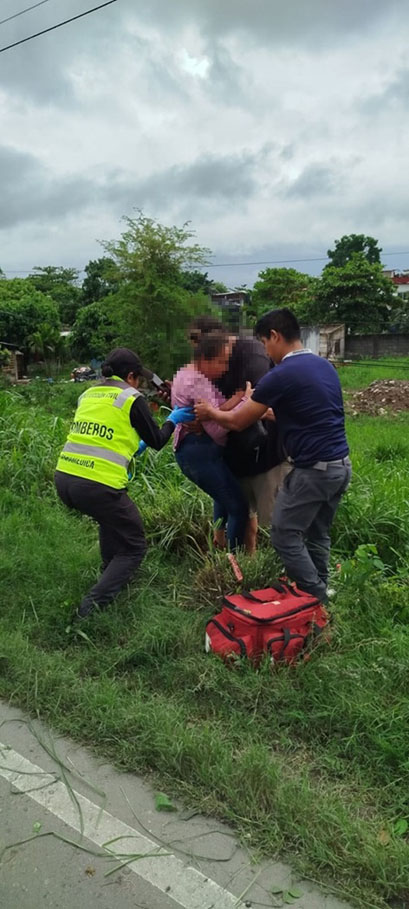 Vecino de esta localidad, al percatarse del accidente, corrieron en su ayuda y una persona retiró la unidad de dos ruedas del lugar del accidente.
