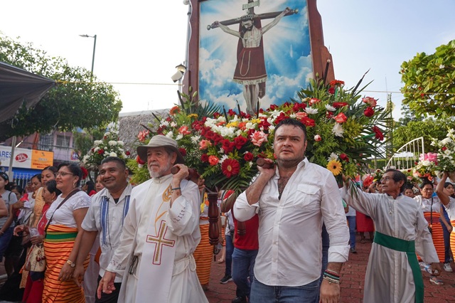 Participa alcalde de Cosoleacaque en el paseo de flores de La Preciosa Sangre de Cristo