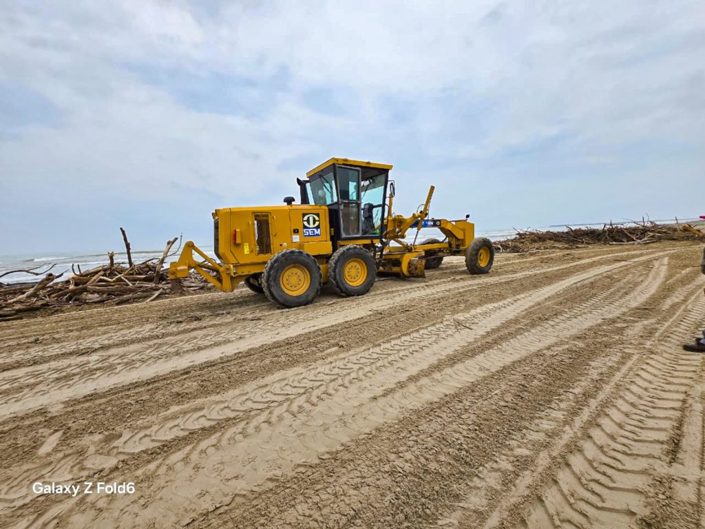 Personal y maquinaria de Obras Públicas del Ayuntamiento trabajan en el retiro de palizada y limpieza general de la Playa Barra Norte. En este primer día el cambio es más que evidente.