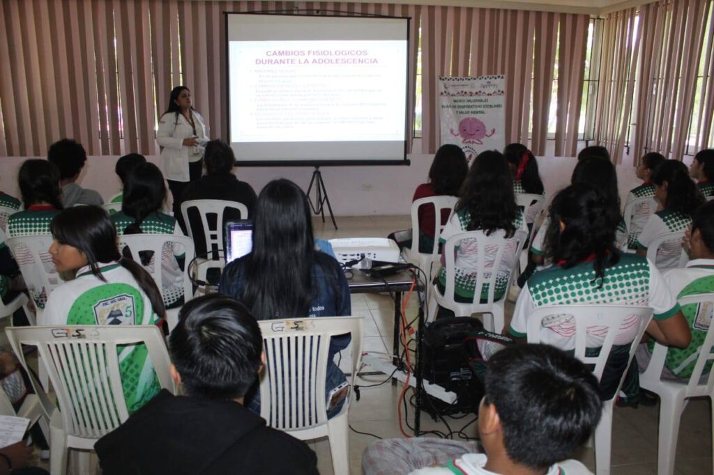 Durante las sesiones brindadas en la escuela, el área de nutrición abordó el tema “Nutrientes necesarios en la etapa de la adolescencia” con el que se enfatizó la importancia de una dieta equilibrada para el desarrollo físico y mental, así como los efectos negativos de la ingesta de comida chatarra, que carece de aporte energético significativo.