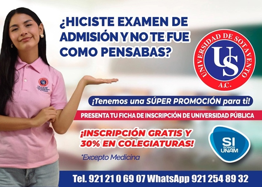 Presenta tu ficha de inscripción de universidad pública y accede a esta promoción especial: Inscripción GRATIS, 30% y de descuento en colegiaturas (Aplica en todas las licenciaturas excepto Medicina).
