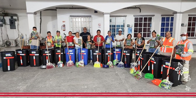 En representación de la Presidenta Municipal, el Director de Limpia Pública Alejandro Ochoa Lara hizo entrega al personal encargado de mantener limpias las calles, insumos como escobas, recogedores y contenedores para facilitar su trabajo y que lo sigan realizando con la eficiencia que ha caracterizado su labor.