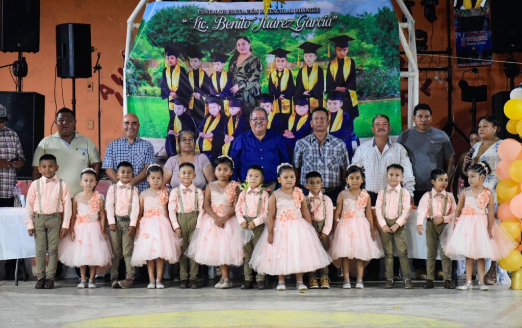 El alcalde Dr. Celestino Pino Guevara fue invitado de honor en la emotiva Ceremonia de Graduación de la Generación 2022–2025 del Preescolar “Mi Patria es Primero” en la comunidad de Totomoxtle, Papantla.