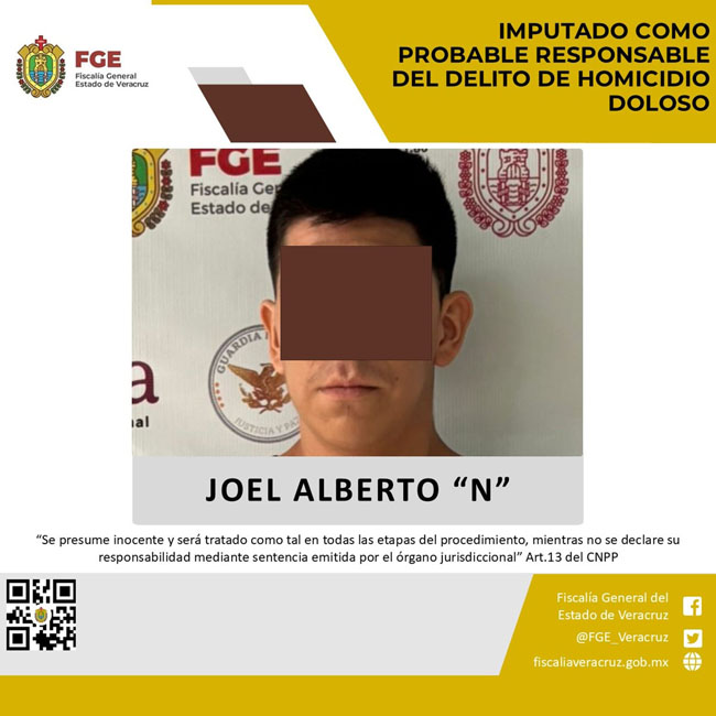La Fiscalía Regional Xalapa realizó imputación en contra de Joel Alberto “N” como probable responsable del delito de homicidio doloso cometido en agravio de la víctima J.A.M.P.