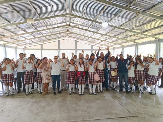 Asimismo, el Ing. Ramadán Salazar González, encargado de responsabilidad social corporativa GPG LATAM; directivos de ambos telebachilleratos y estudiantes beneficiados.
