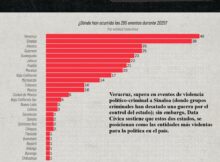 Supera a Sinaloa, donde criminales han desatado una guerra. Con 40 eventos de violencia político-criminal registrados en los primeros seis meses de 2025, Veracruz se posiciona como la