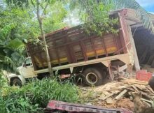Cuerpos de emergencia y autoridades al sitio Misantla, Ver. Tremendo susto se llevó una familia al ver que un camión de carga se impactó contra su vivienda,