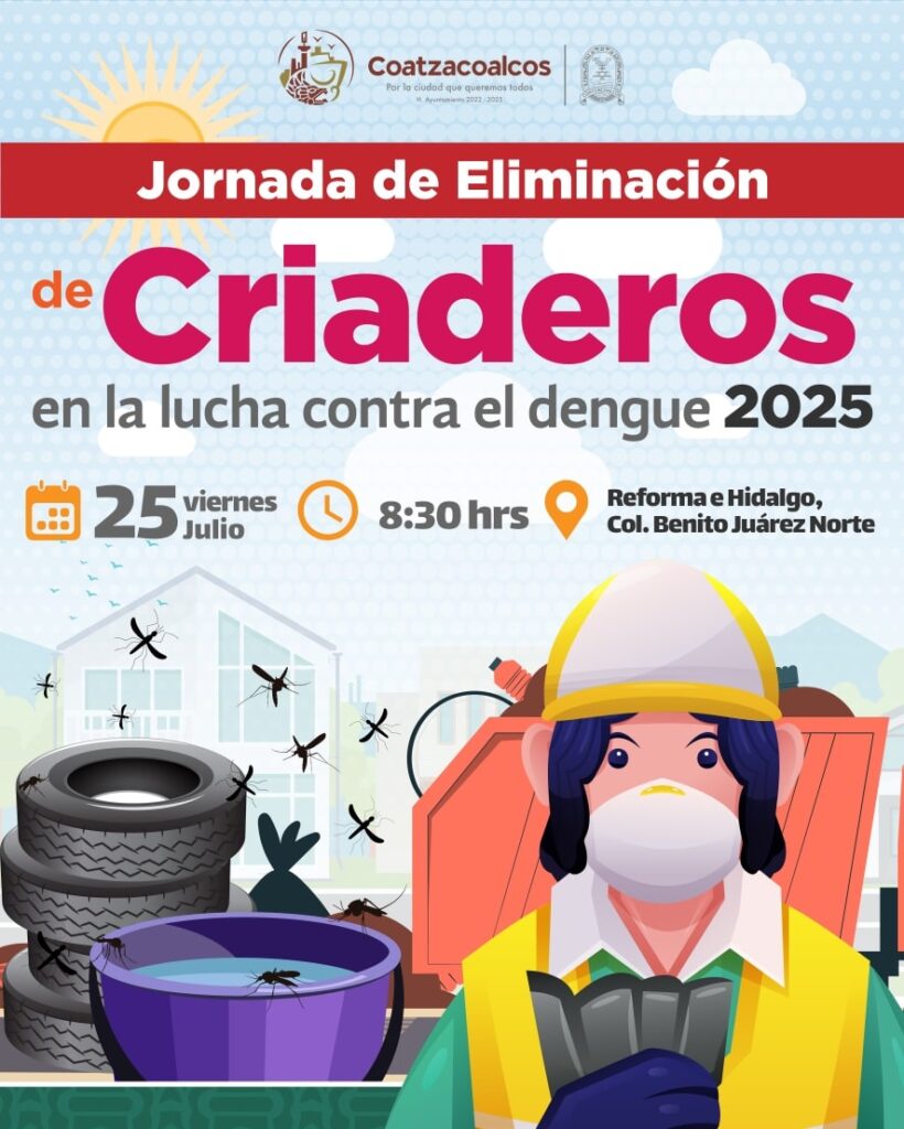 El Gobierno de Coatzacoalcos, que Preside Amado Cruz Malpica; invita a la ciudadanía en general para que se sume a la jornada de eliminación de criaderos en la lucha contra el dengue 2025.