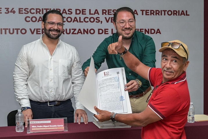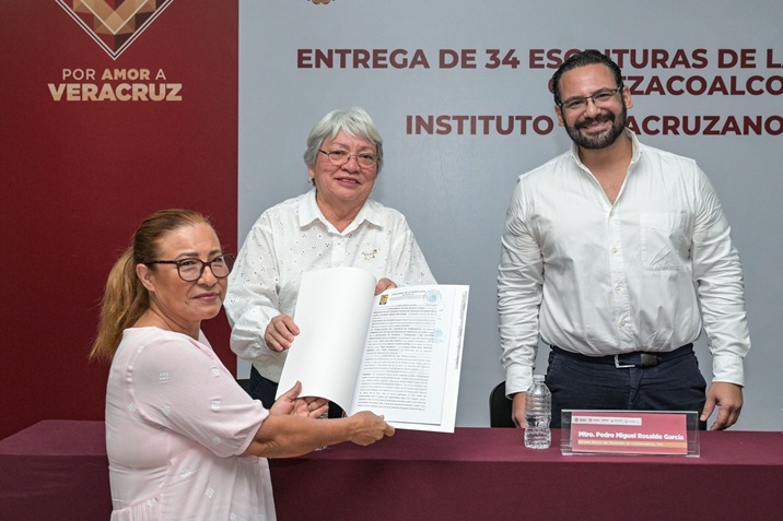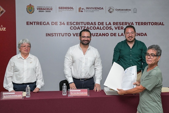 Coatzacoalcos fue sede de la primera entrega de escrituras en la entidad por parte del Instituto Veracruzano de la Vivienda, quien este viernes junto a autoridades municipales entregó 34 certificados de propiedad a habitantes de las colonias Divina Providencia, Las Barrillas, Lomas de Barrillas, Santa Isabel y Teresa Morales.