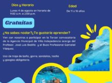 Agencia municipal de Villa Independencia invita curso de natación gratuita. May Hilario Martínez de la Torre, Ver. La Agencia Municipal de Villa Independencia, convoca a niños y jóvenes
