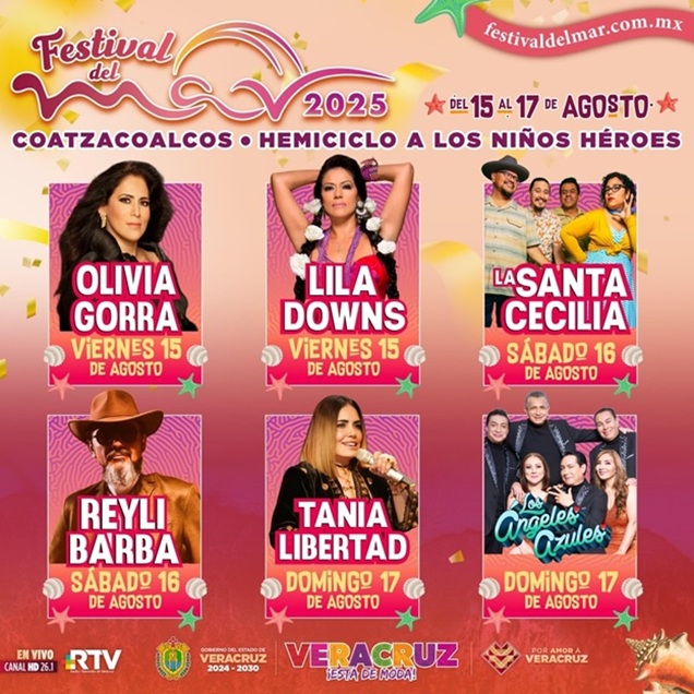 Por su grandeza y diversidad cultural, gastronómica, política y comercial; la ciudad y puerto de Coatzacoalcos será sede del “Festival Cultural del Mar”, en donde grandes exponentes brindarán conferencias magistrales en el Centro de Convenciones y artistas de talla internacional llenarán de música el escenario principal desde el Hemiciclo de los Niños Héroes.