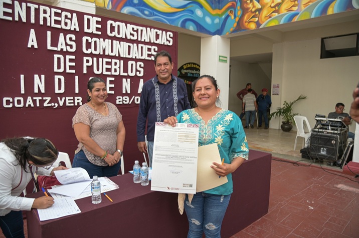 Entregan constancias del INPI a comunidades indígenas de Coatzacoalcos
