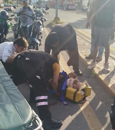 Paramédicos de Cruz Ámbar arribaron hasta el lugar y les brindaron la atención prehospitalaria, la víctima por presentar lesiones graves, fue trasladada al hospital IMSS bienestar.
