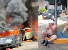 En protesta por abusos y cobros indebidos. Arremetieron contra elementos, los desnudaron, golpearon, amarraron y quemaron dos vehículos y motocicletas. Pobladores con los rostros cubiertos retuvieron a agentes