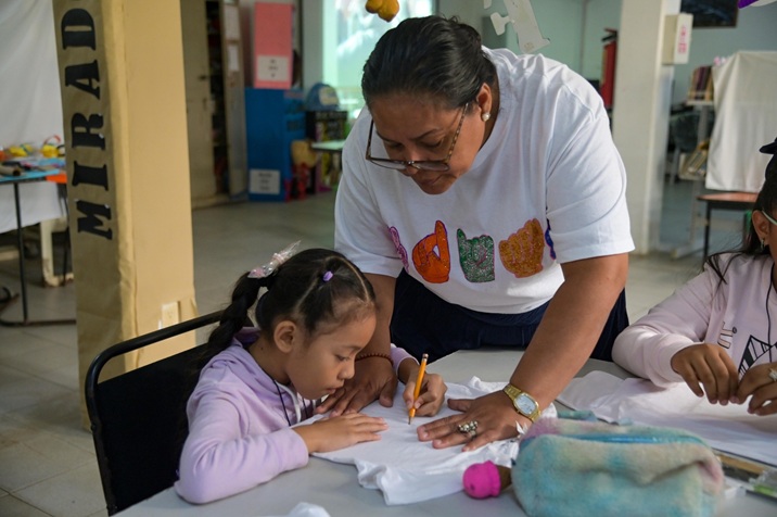 A través de videos, los participantes fueron concientizados sobre la importancia de la inclusión y como actividad práctica, cada niño pintó una playera con la inicial de su nombre en lenguaje de señas.