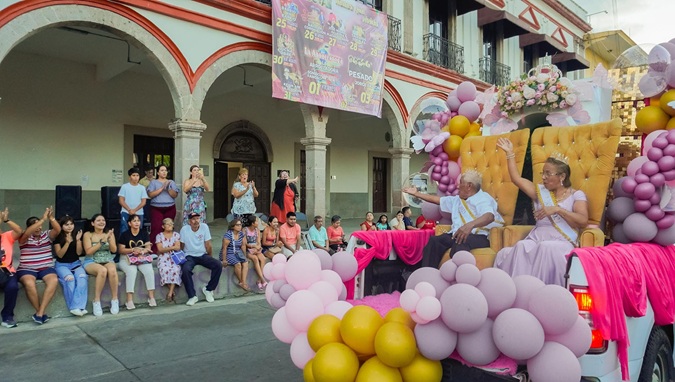 En el recorrido se hizo presente la joven Nimbe Paulette, reina de la feria Tlapacoyan 2025, además la reina infantil Luz Belén del barrio de Santiago, además los abuelitos del IMPAM, quienes son representados en las festividades por María Elena Esteban González y Aniceto Martínez Hernández, quienes saludaron a las familias que se asistieron a ver el gran desfile en las calles.