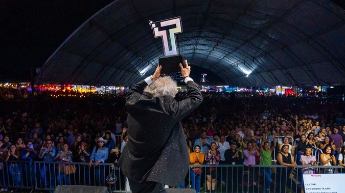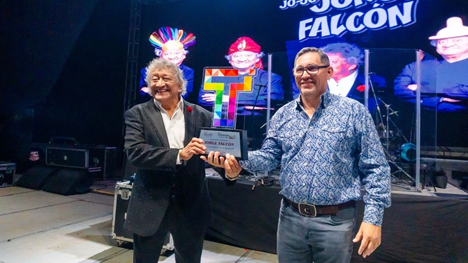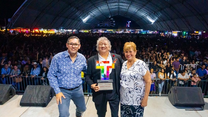 El presidente municipal, Salvador Murrieta Moreno, hizo entrega de distinguido reconocimiento al comediante internacional, Jorge Falcón, como parte de su participación en la feria Tlapacoyan 2025, quien ha sido todo un éxito.