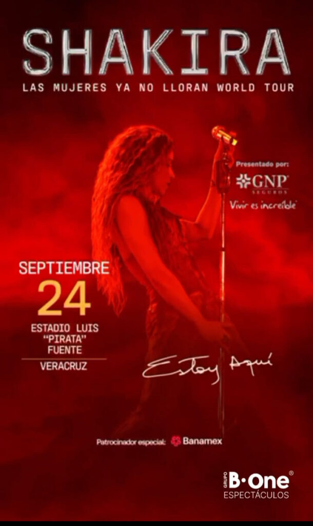 Veracruz, Ver.-* La ciudad de Veracruz se prepara para recibir a una de las artistas más icónicas de la música latina: Shakira. La gira mundial «Las Mujeres Ya No Lloran World Tour» llega al estadio Luis «Pirata» Fuente el miércoles 24 de septiembre a partir de las 21:00 horas.