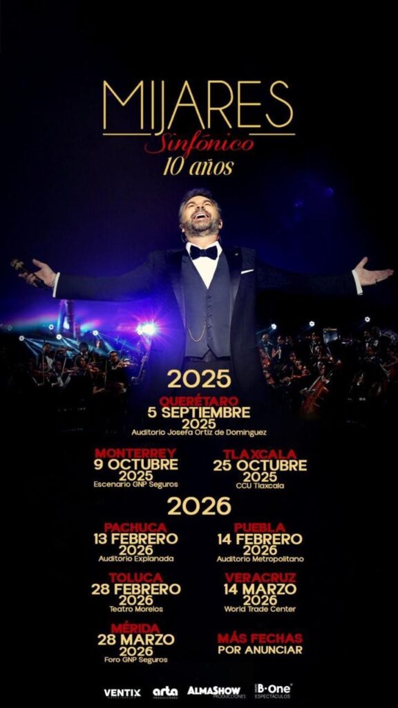 Recientemente Mijares presentó su concierto sinfónico «Celebra el Amor» en más de 61 ciudades de México, incluyendo Veracruz, como parte de una gira que combina su voz con arreglos orquestales únicos.