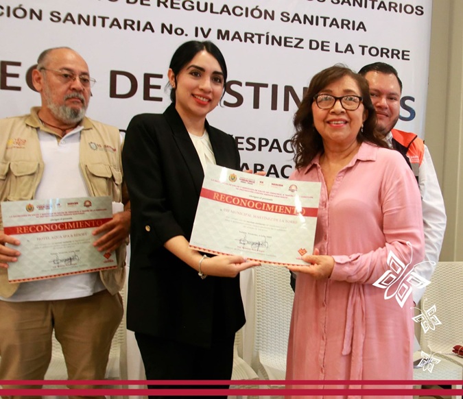 En dicho evento, Cinthia Alarcón Mora, jefa del departamento de fomento sanitario, en representación del Ing. Roberto Ruiz Vargas, director de protección contra riesgos sanitarios, entregó un reconocimiento al DIF Municipal por sus buenas prácticas en el manejo de programas asistenciales alimentarios, el comedor comunitario y las diferentes áreas de servicio asistencial.