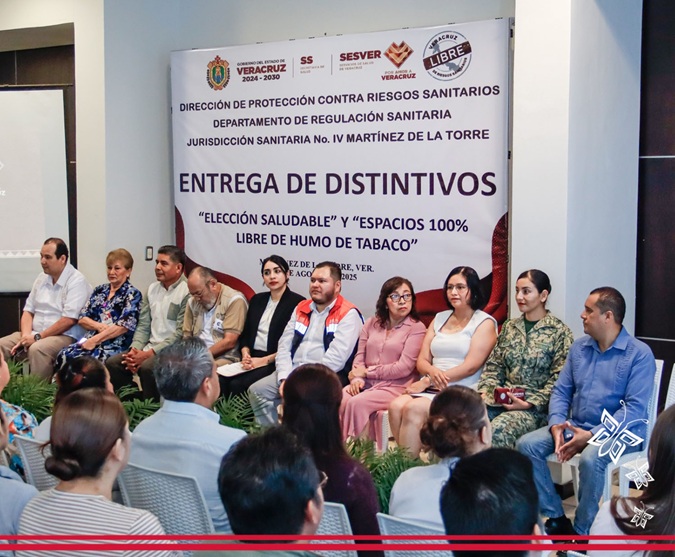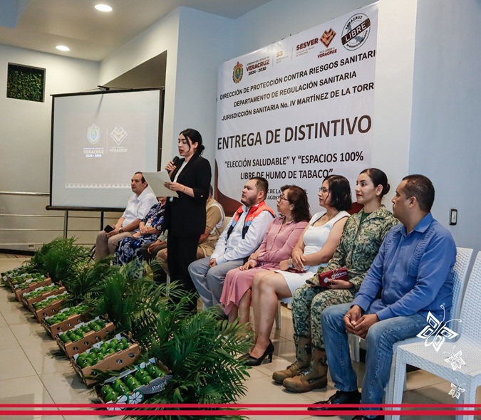 El Gobierno de Martínez de la Torre, presidido por la Alcaldesa Alfa Citlalli Álvarez Vázquez es un aliado del Sector Salud, por ello esta mañana la Presidenta del DIF municipal, Mtra. Elvira Vázquez Mendoza acudió a la entrega de distintivos de «Elección Saludable» y «Espacios libres de humo de Tabaco», organizada por la Jurisdicción Sanitaria número 4, en la que fueron distinguidos establecimientos comerciales de la región.