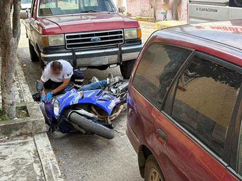 Al lugar acudieron paramédicos de Protección Civil, quiénes al llegar hasta el lugar encontraron a un masculino, éste se encontraba tirado sobre su costado derecho y aun montado sobre una motocicleta de la marca Yamaha, de color azul metalico, mismo que presentaba varios impactos de arma de grueso calibre y ya no contaba con signos vitales.