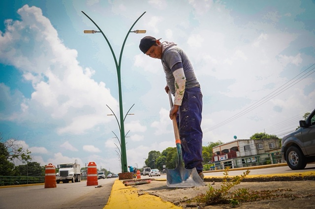 Para que las calles y avenidas principales de Cosoleacaque luzcan limpias y ordenadas, desde muy temprano, personal de Limpia Pública del H. Ayuntamiento de Cosoleacaque realiza barrido de calles, guarniciones, banquetas y camellones de la ciudad.
